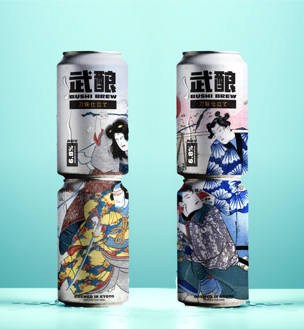 BUSHI BREW blends samurai discipline with craft beer rebellion. Featuring Ukiyo-e warrior art and a bold, slash-style logomark, each can pays tribute to Japan’s spirit of craftsmanship — turning every brew into a drinkable piece of folklore.