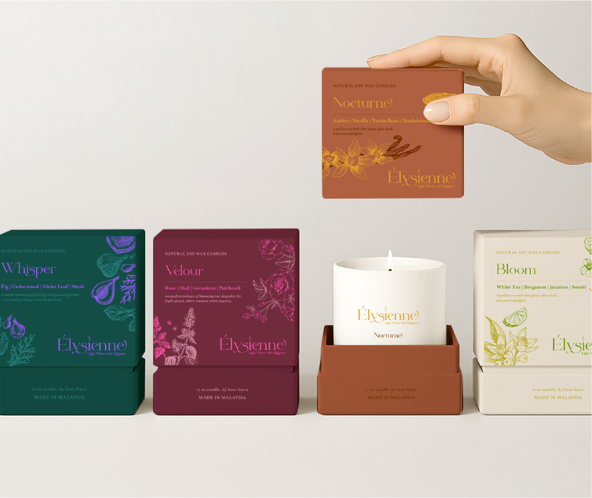 Élysienne positions itself as a luxury lifestyle candle brand, offering not just fragrance but a ritual of